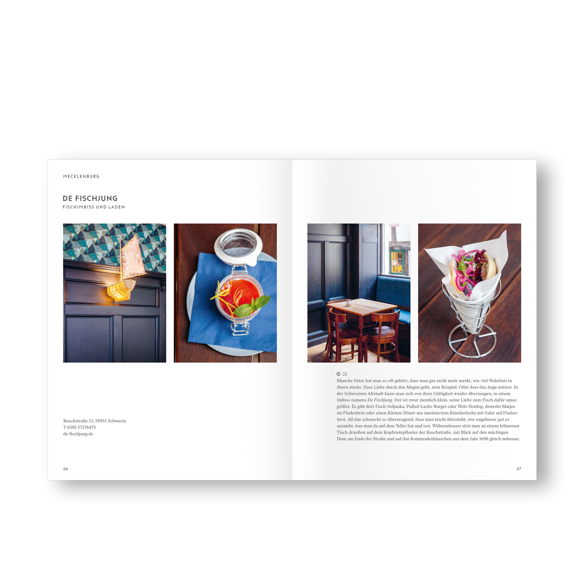 Die Auswahl an Gastronomien im Buch reicht von bodenständigen, regionalen Angeboten bis zu zeitgemäßen Head-to-Tail-Prinzipien und Fine Dining-Angeboten oder Erlebnis-Gastronomien – und zeigt eine diesbezüglich oft unterschätzte Region in ihrer kulinarischen Vielfalt. „Das Vorurteil ist doch“, sagt Verlegerin Frenz, „rund um Hamburg, da gibt es tolle Gegenden – aber nicht richtig was zum Essen. Das wollen wir widerlegen.“